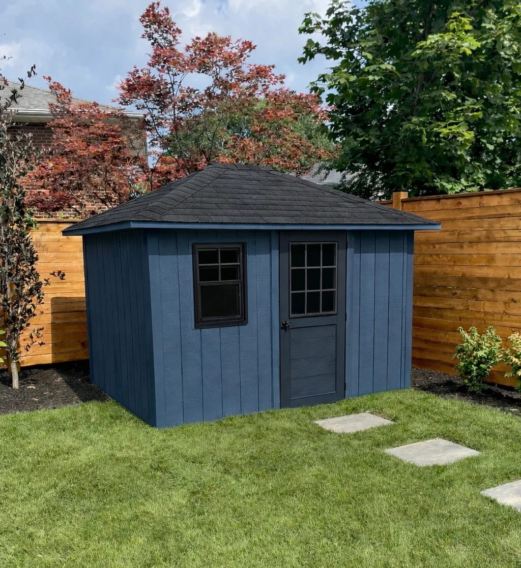 A hip roof shed is a shed with a roof that slopes downward on all four sides, meeting at a ridge or a single peak at the top. This design provides extra stability, strong wind resistance, and a clean, symmetrical appearance compared to a traditional gable roof shed.